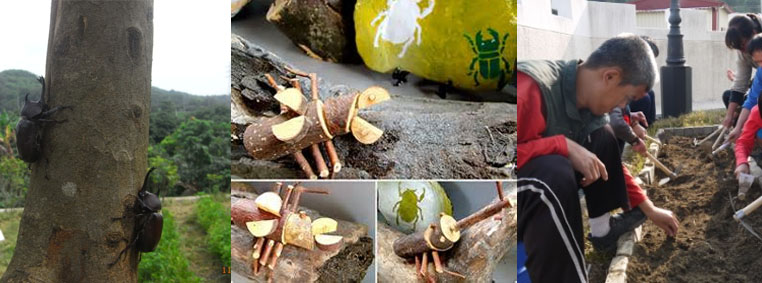 每年梅雨季的前後,是在土中蟄伏已久的獨角仙大爆發的時節,光臘森林內有著獨角仙最愛吸食的光臘樹液;還有每天上演著爭風吃醋的戲碼,為的就是要在短暫的生命裡孕育下一代。希望大小朋友在觀察自然生態的同時,可以利用自然素材來製作專屬的生物標本回家紀念,讓農場內的住民們可以快樂生活。