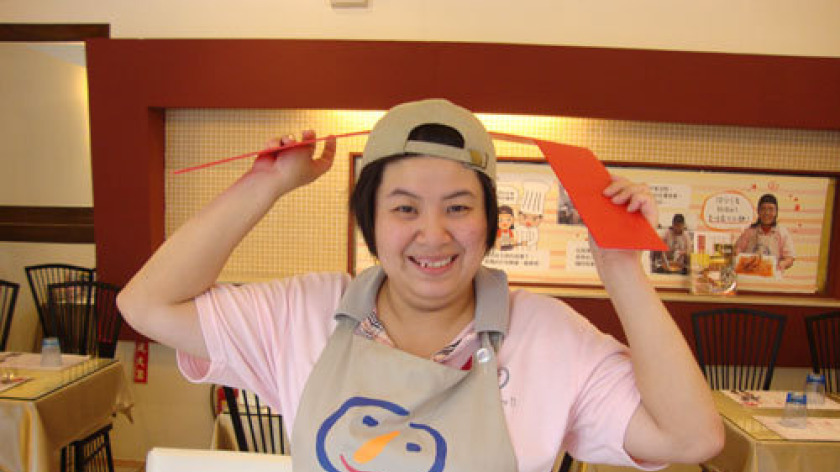 壯碩身材、害羞個性、靦腆笑容、今年二十歲的小柏於去年10月在建中店擔任外場見習生,並於今年2月份升轉庇護員工。 「你好!這是我們菜單,請參考看看」,害羞又靦腆的小柏,努力的說出點餐術語。