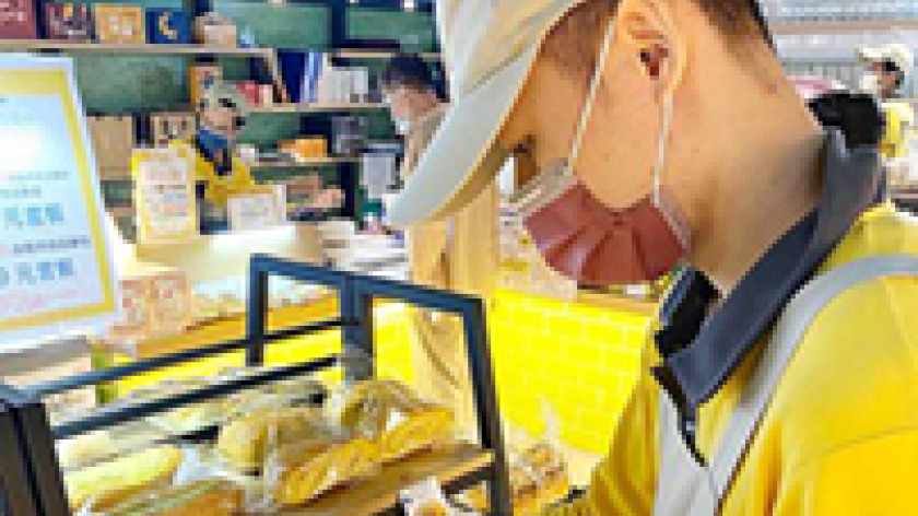 小博是Enjoy門市裝袋麵包及擺放上架的主力人員,今年四月門市迎來全新的麵包品項,與以往部分麵包的替換或少量新增不同,包含麵包名稱、外型及種類全數更換,對於小博來說是一個全新的挑戰。起初也會擔心小博