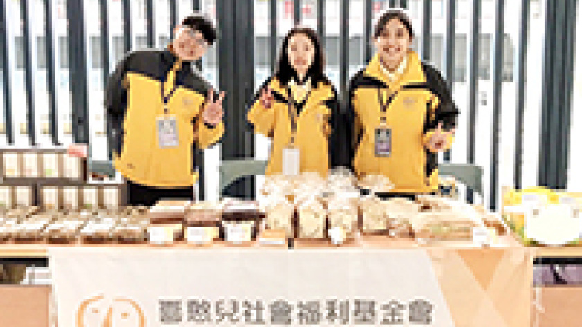 這天下著小雨,小庭與哥哥姊姊提著各式的義賣用品來到會場,