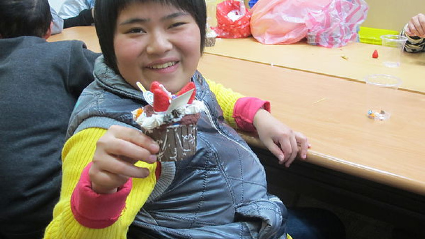 小君是在去年進入憨喜工坊,剛開始是個極害羞的小朋友,