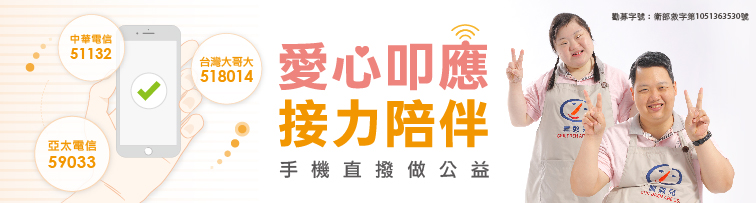 喜憨兒們給予社會大眾的第一印象,就是會做好吃的麵包。但他們的開始總是慢了一大步,比別人晚學會走路、比別人晚開口說話,身體機能卻衰退老化的比你我都快,一個失速的人生,成為憨兒家庭放心不下的未來。除了直接捐款,您的一張發票,也能化身為最簡單的善舉...(more)