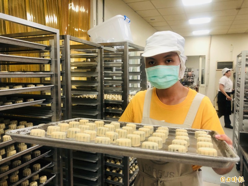 24歲中度智能障礙的阿偉,從2015年進入竹北庇護工場,5年來累積1600多個小時練習時間,終於在今年初考取烘焙證照,今年中秋節更挑戰進入內場與師傅一起烘烤月餅,為自己生命里程碑烙下值得紀念勳章。(喜憨兒基金會提供)
