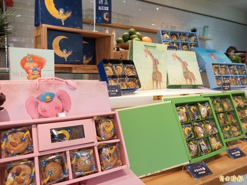 喜憨兒基金會今年推出的中秋禮盒,有金沙奶皇、觀音奶茶、香橙檸檬酥、香柚抹茶(奶蛋素)等多樣化口味,以及憨喜農場系列,農產品通過國內310項農業檢測。(記者廖雪茹攝)