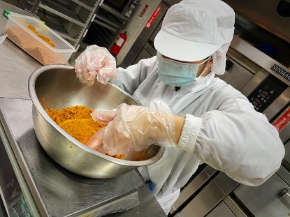 而老編之前因為也是庇護工場的輔導顧問,對於認真工作的庇護員工都很欽佩,尤其現場的麵包都是新鮮製作、限時出爐,正好趕上了還在製作的時間,在經過店長及庇護員工的同意後,特別還側拍了一張認真工作的畫面,感覺食物都美味起來了!