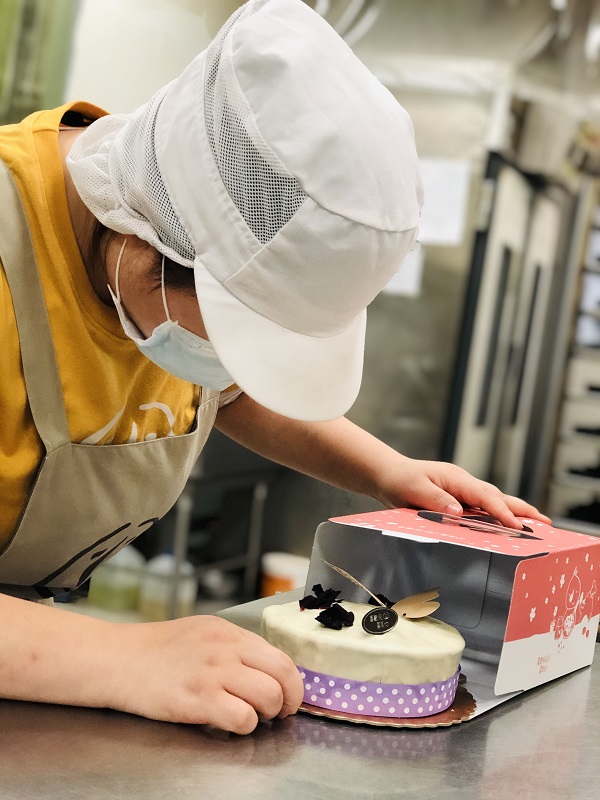 「阿南看老師喔!要順時鐘同一方向攪拌」,阿南學習攪拌麵糊已經三個月了,大致上的流程雖不熟練但也能慢慢完成,只是小細節阿南仍會不小心遺漏。其實在憨兒的工作生涯裡,「學習」佔了大多數的比例,也造就憨兒一顆謙虛的心,還有全心全意的專注力。把握每一項得之不易的任務,付諸全力用行動證明,憨兒天生雖不完美但不等於沒有能力,只要肯學肯練,也能在師傅的帶領下,烘焙出一顆顆鬆軟的蛋糕。