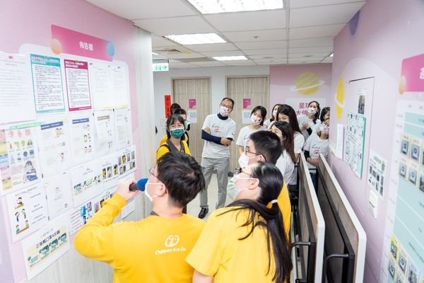 台灣LG電子是今年首家參訪古亭工坊的企業,基金會安排兩位憨兒解說員為志工導覽古亭工坊-古亭星球,其中一位個性熱情的憨兒,大方分享平日手繪的電影變形金剛中的圖騰,還有模擬電影主角的手繪原稿,作品維妙維肖「睛」艷現場眾人。而另一位怯場緊張的憨兒,再受到志工及社工們的引導鼓勵,開始有自信並侃侃而談說明工坊的運作實務。
