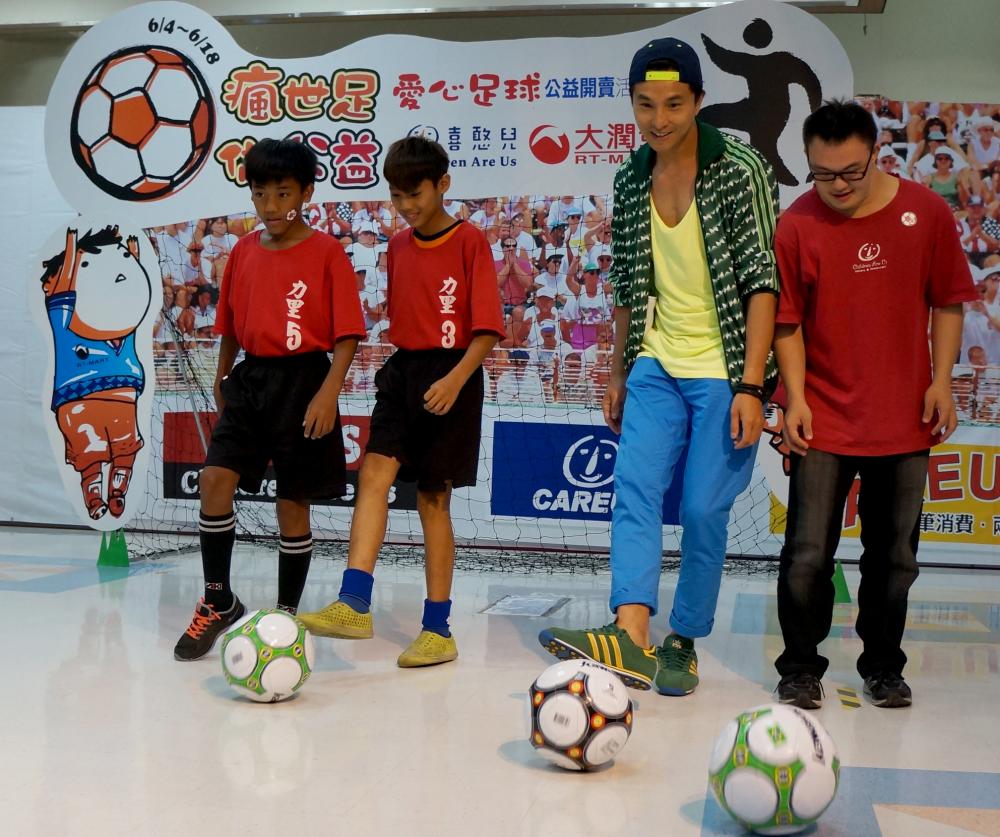 活動在大潤發精心規劃的室內足球場裡展開,憨兒與力里國小足球隊員開心踢球。從小到大多次代表學校出國比賽的王少偉,特別南下高雄為憨兒與部落學童加油打氣,他說:很開心參與這次的公益活動,現在的台灣正需要力挺良善的力量,喜憨兒傳遞的正是不向命運低頭的勇敢,希望大家一起共襄盛舉,關注心智障礙者,也關心部落學童的學習與教育。全校僅有88位小朋友的力里國小,剛獲得全國足球錦標賽冠軍,考試分數不再是唯一評點成績的方式,藉由體育鍛鍊體能,也培養團體合作的默契,偏鄉學童也能在足球場上找到自信。