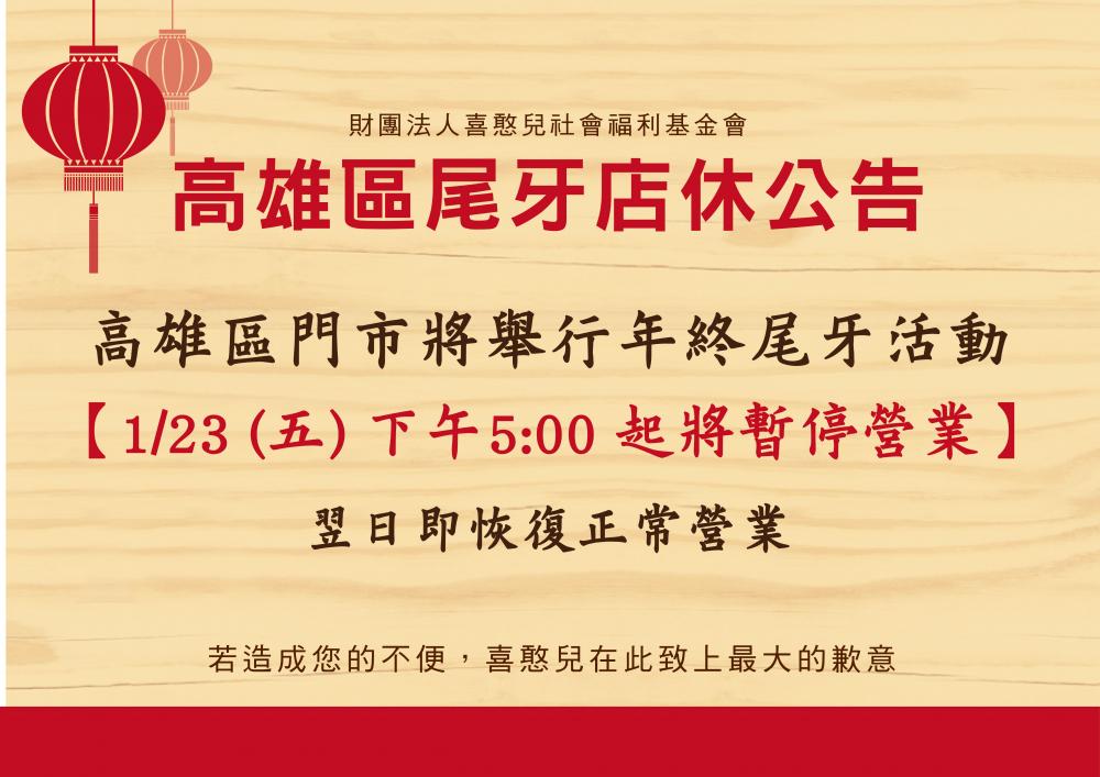 喜憨兒高雄區尾牙店休公告