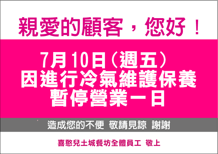 Te Am喜憨兒土城餐坊7/10內部裝修,暫停營業一天公告