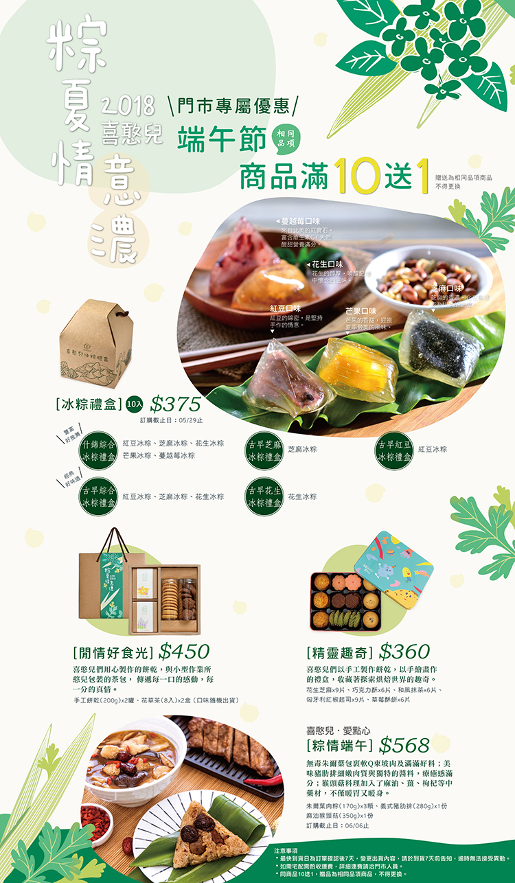 一般 粽夏情意濃 2018-05-15 分享 喜憨兒嚴選,純米製作的冰粽,冰涼軟Q, 以台灣盛產的紅豆、花生、芝麻, 堅持以古法蒸煮,製作香醇濃郁的餡料, 今年還有芒果、蔓越莓兩種口味提供您選擇, 要讓您清涼一夏~ 預購即日起至6/8止,請洽各門市訂購。