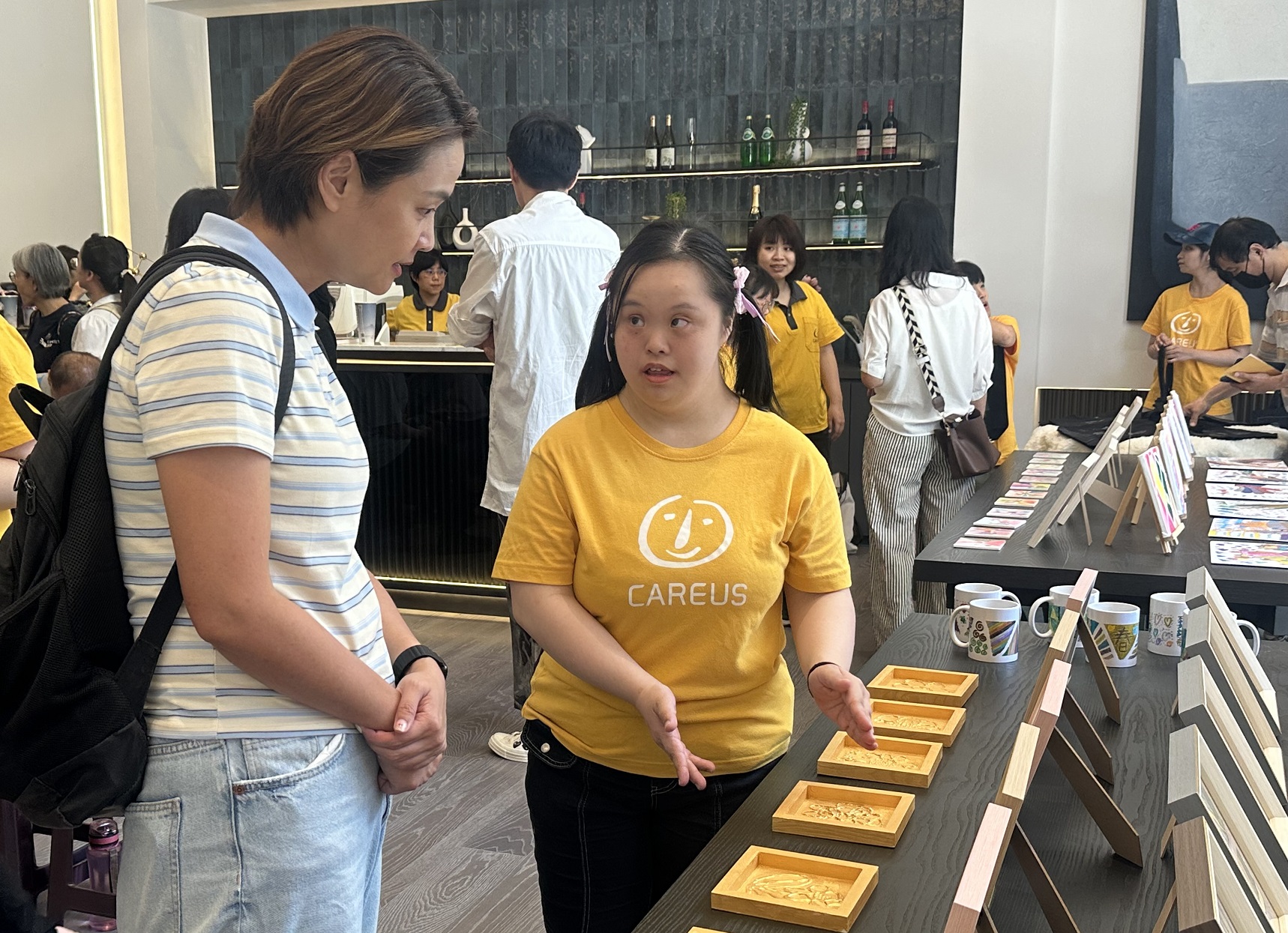 展覽現場憨兒作者們熱情地向民眾介紹自己的創作理念,