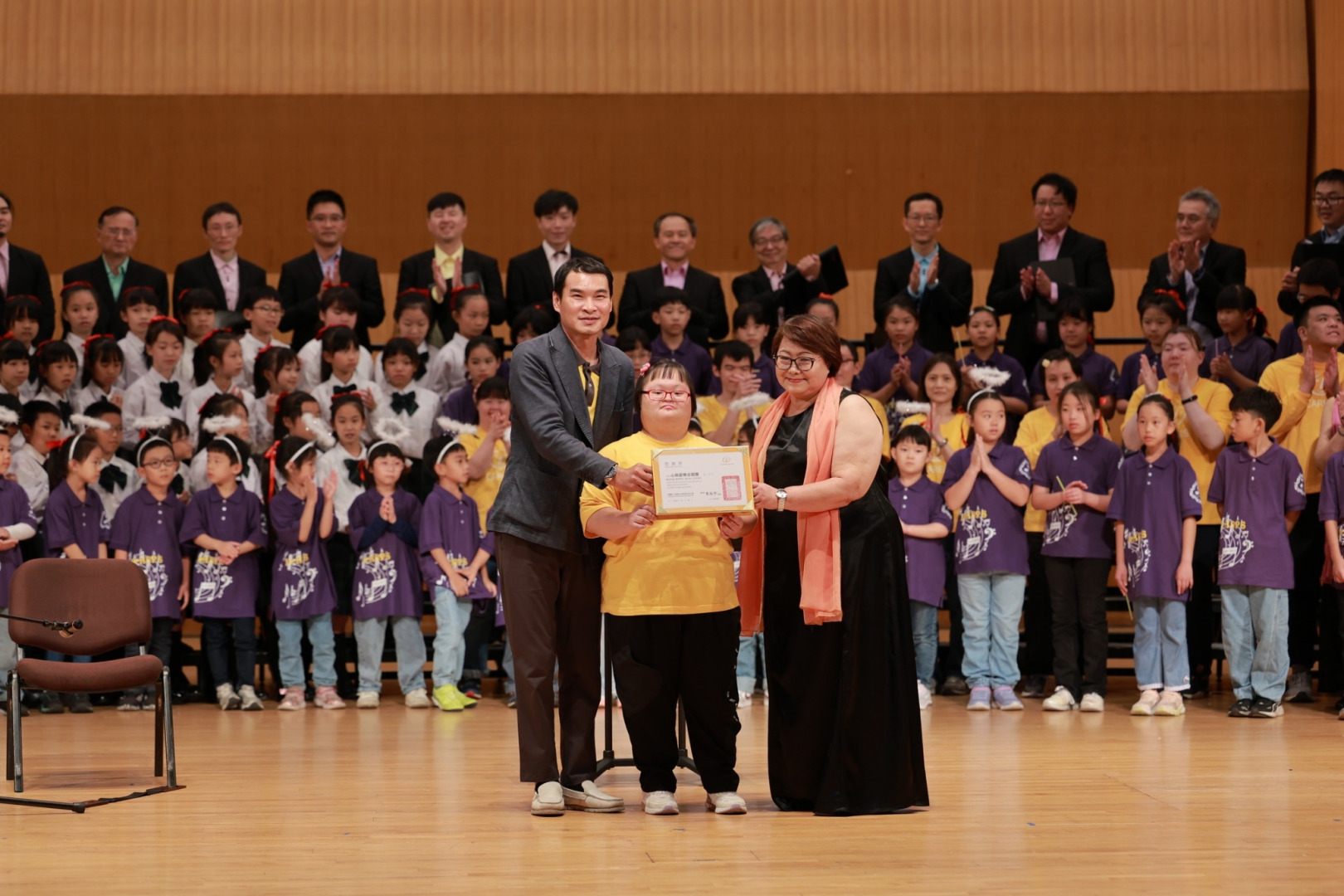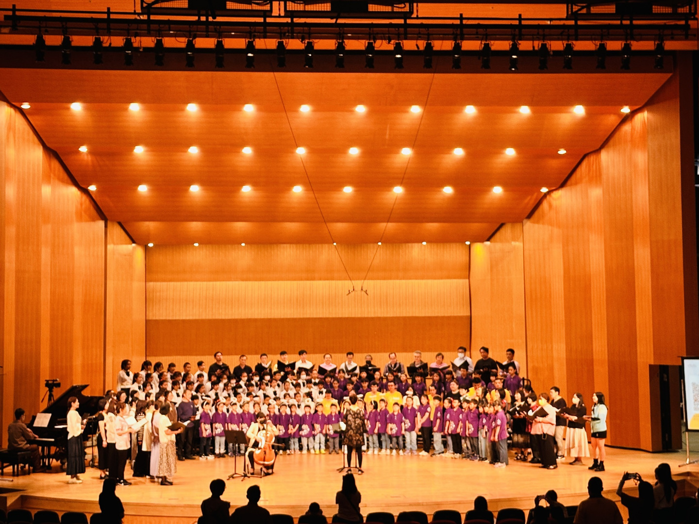 下半場由心築愛樂合唱團、新竹國小合唱團、東園國小合唱團、超酷麗麗合唱團大合唱:「世界贈予我的」動人的旋律與歌詞感動全場人心,這場音樂會不僅是一場藝術饗宴更是一場溫暖的公益旅程。感謝 心築愛樂合唱團,用音樂串起愛的力量,讓公益不只是捐款,更是一種深刻的陪伴與行動,讓憨兒的未來更加閃耀。