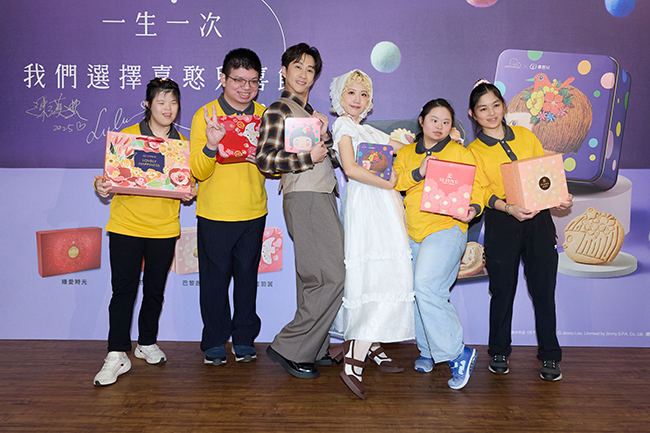 其實二位藝人和喜憨兒合作已有二年。陳漢典是喜憨兒2025年中秋代言人,曾在拍攝公益短片時和憨兒有第一次接觸,Lulu 的參與就更早、也更深入。她曾連續二年擔任喜憨兒送愛到部落的公益大使,實地陪同憨兒到偏鄉國小送餐盒,也在烘焙坊裡與憨兒一起烘焙、組裝、接受憨兒的指導。
