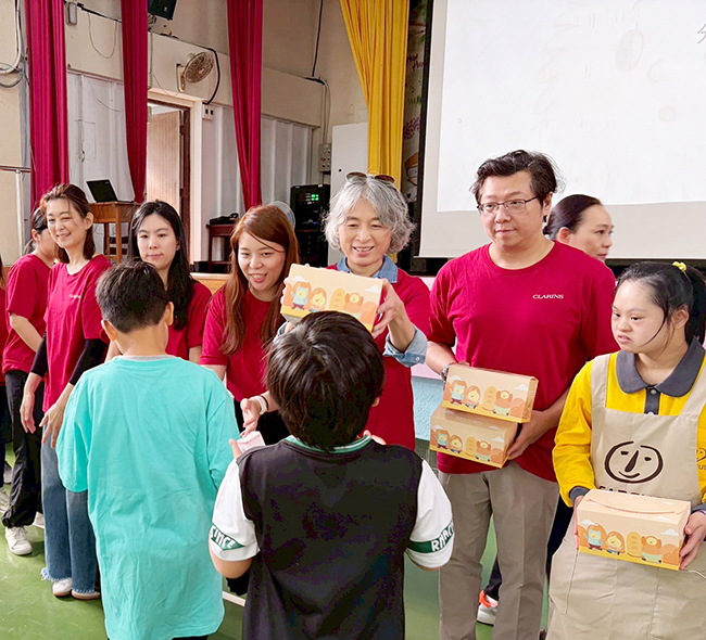 2025年12月,克蘭詩台灣的美麗夥伴們與喜憨兒們一同前往新北市瑞芳區義方國小送上愛心餐盒,為孩子們帶來滿滿的關懷與溫暖。同時,夥伴們也精心規劃「互動時光」與「護手按摩小學堂」,透過簡單的故事與小朋友進行交流;準備1人1條的護手霜進行實際操作,讓小朋友了解手部保養的重要性,並期待孩子們能將所學帶回家,為家人按摩,增進親子互動。