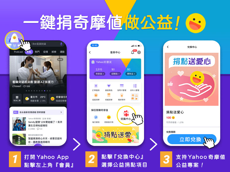 為陪伴憨兒走過這段學習與成長的歷程,Yahoo 奇摩攜手喜憨兒基金會推出「奇摩值捐點做公益」活動,邀請民眾捐出手中的奇摩值,一起支持憨兒工作訓練服務。