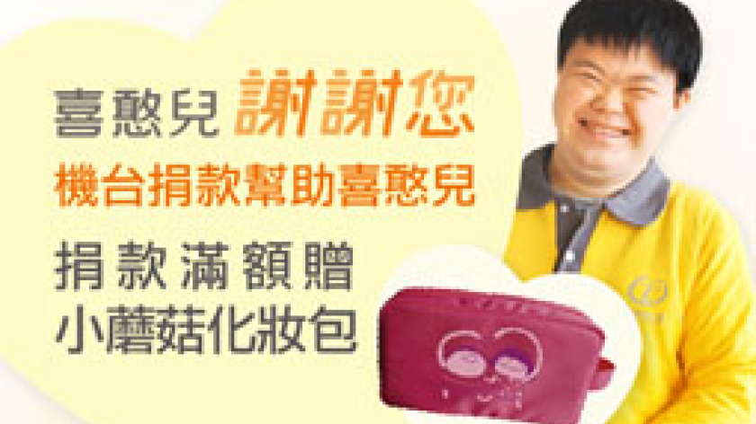 快到『超商機台 愛心捐款』,滿額即贈小蘑菇包!