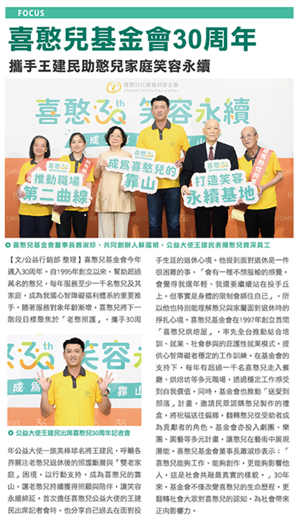喜憨兒基金會30周年,攜手王建民住憨兒家庭笑容永續