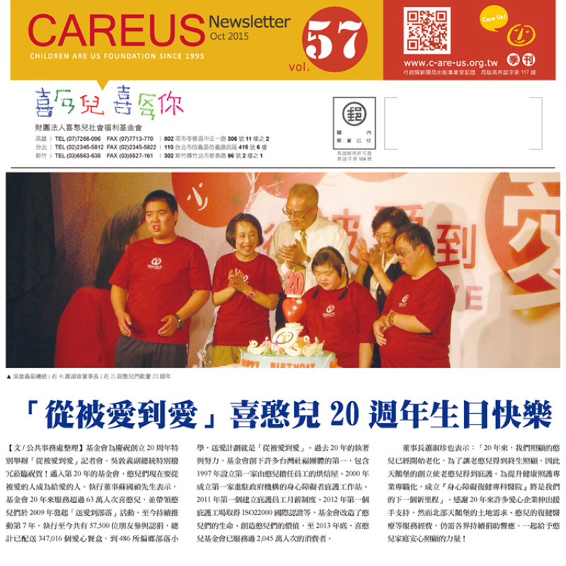 「從被愛到愛」喜憨兒20週年生日快樂更多詳細的內容,請閱讀本期期刊…